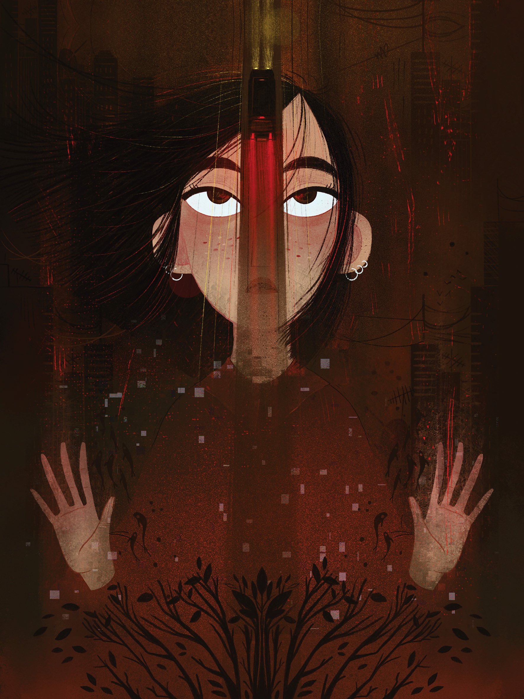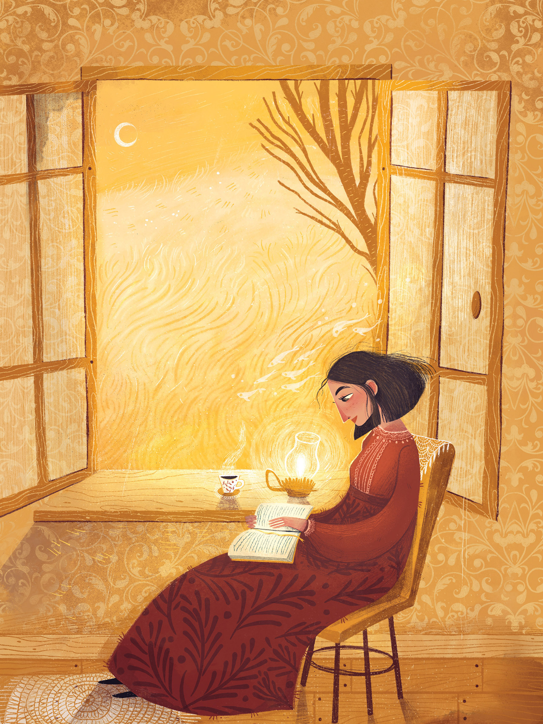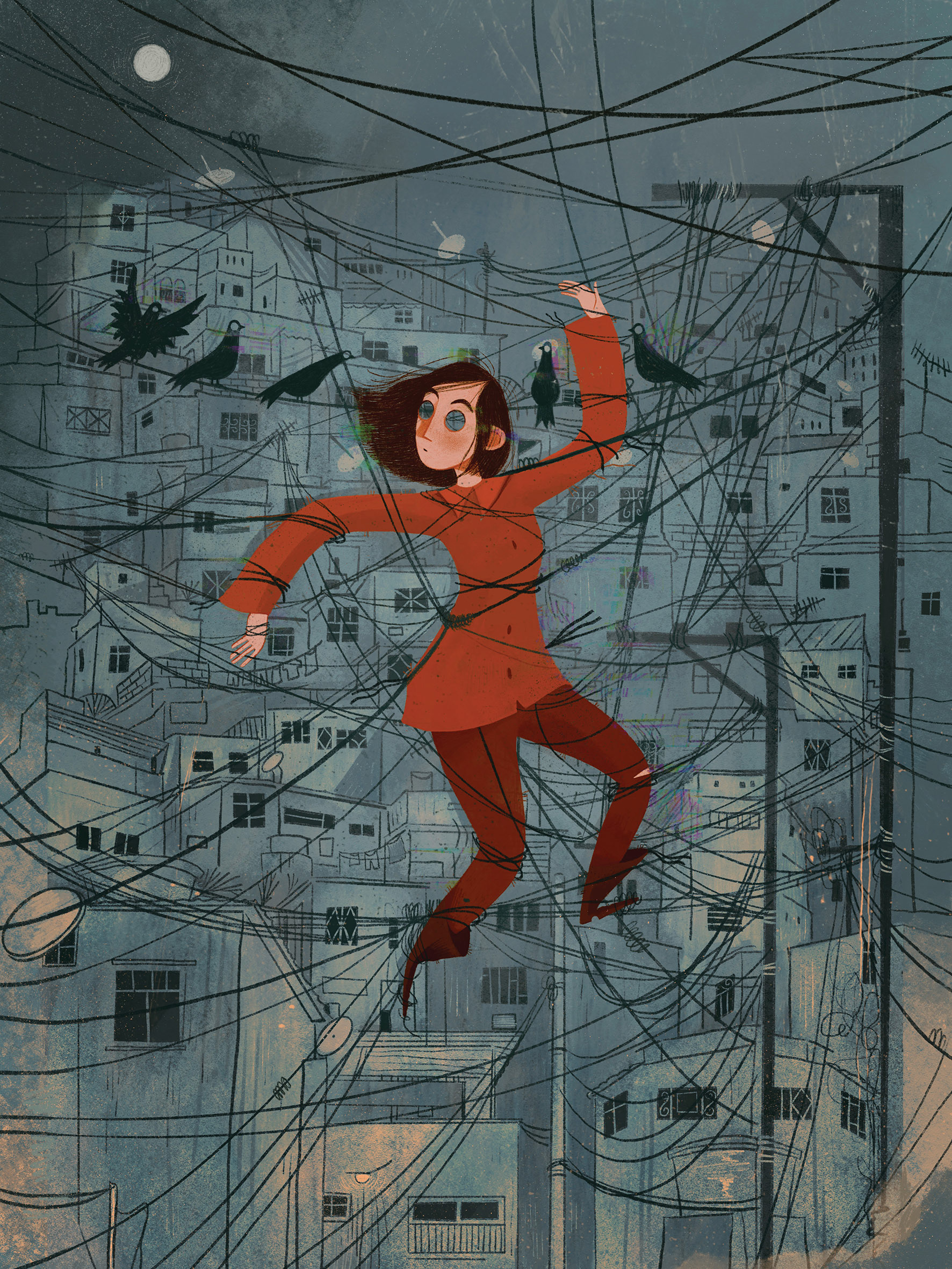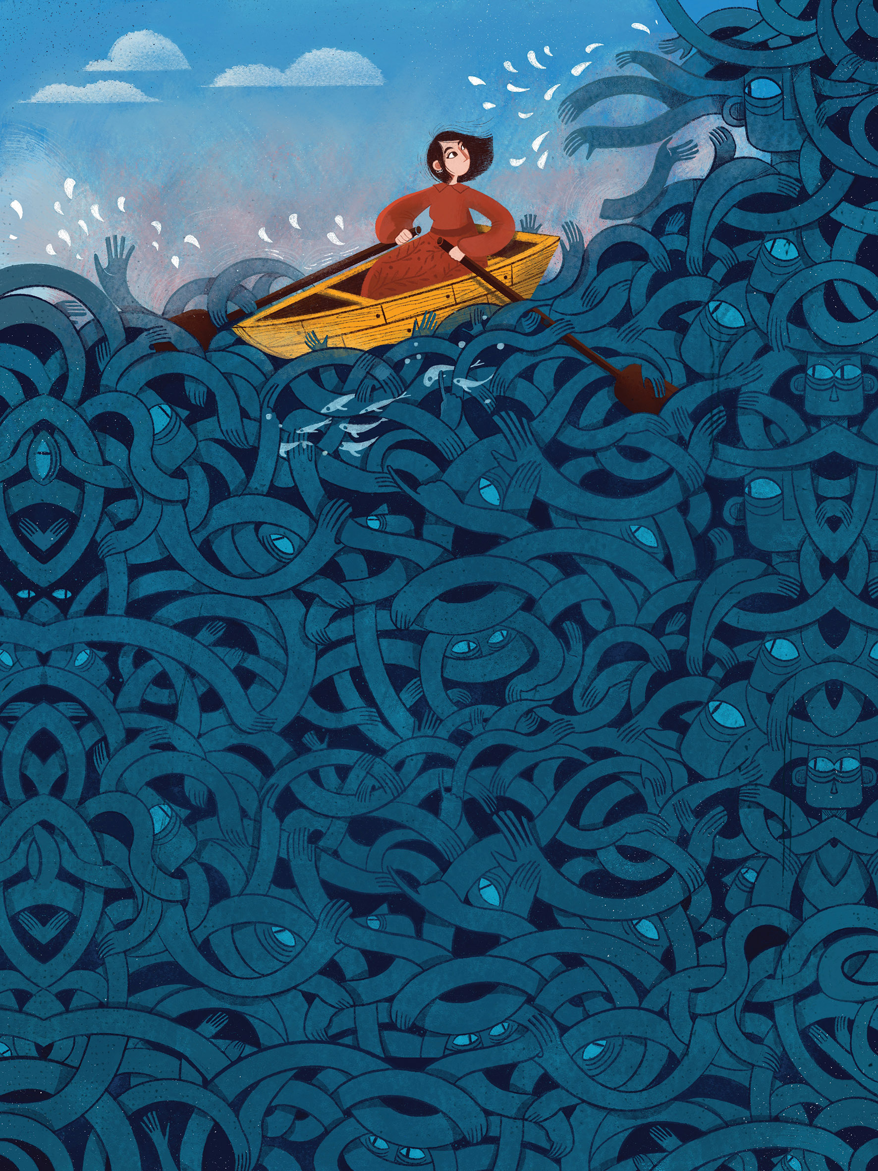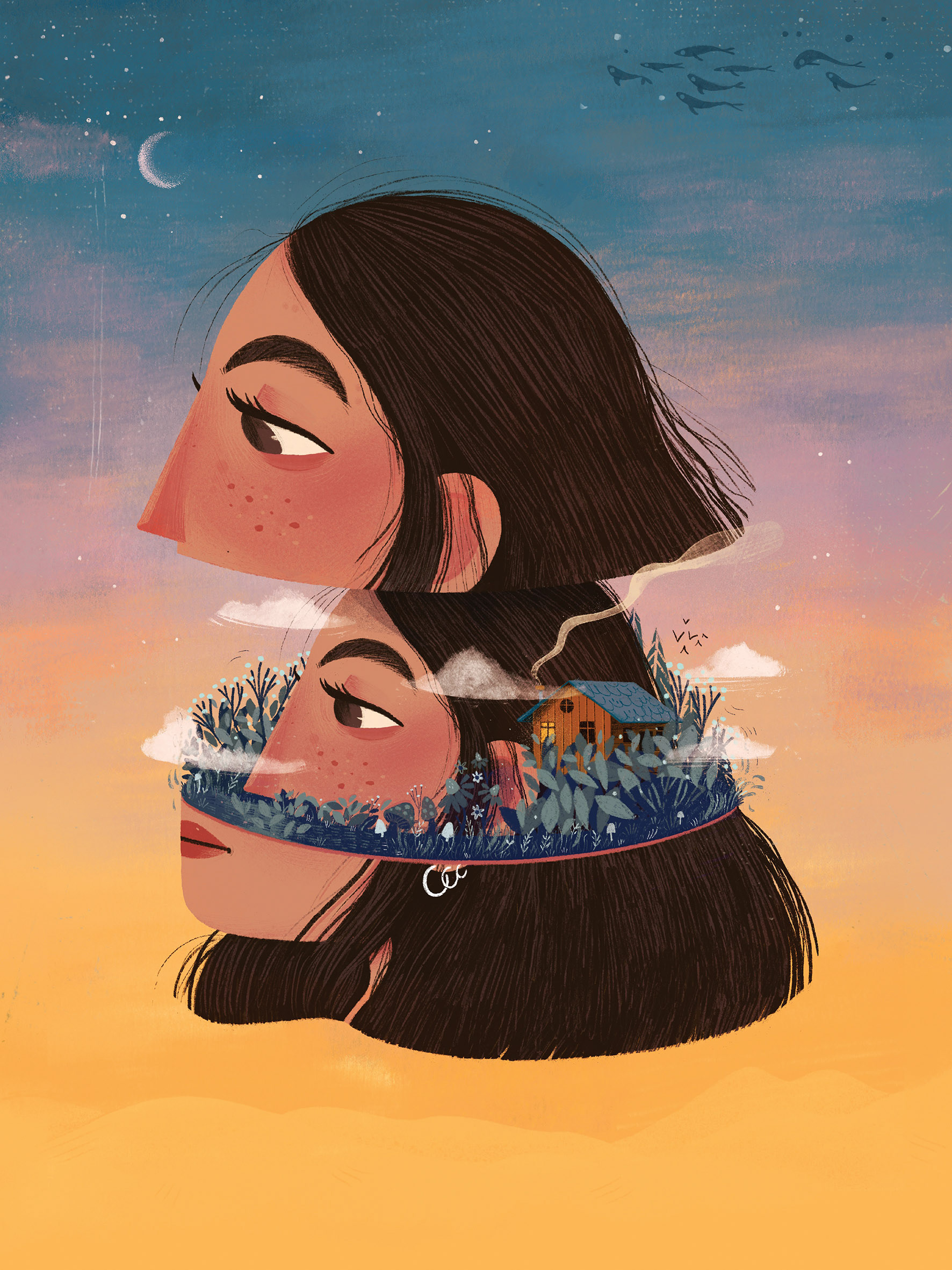 Les illustrations traduisent ses états d’âme à travers couleurs, textures et formes.